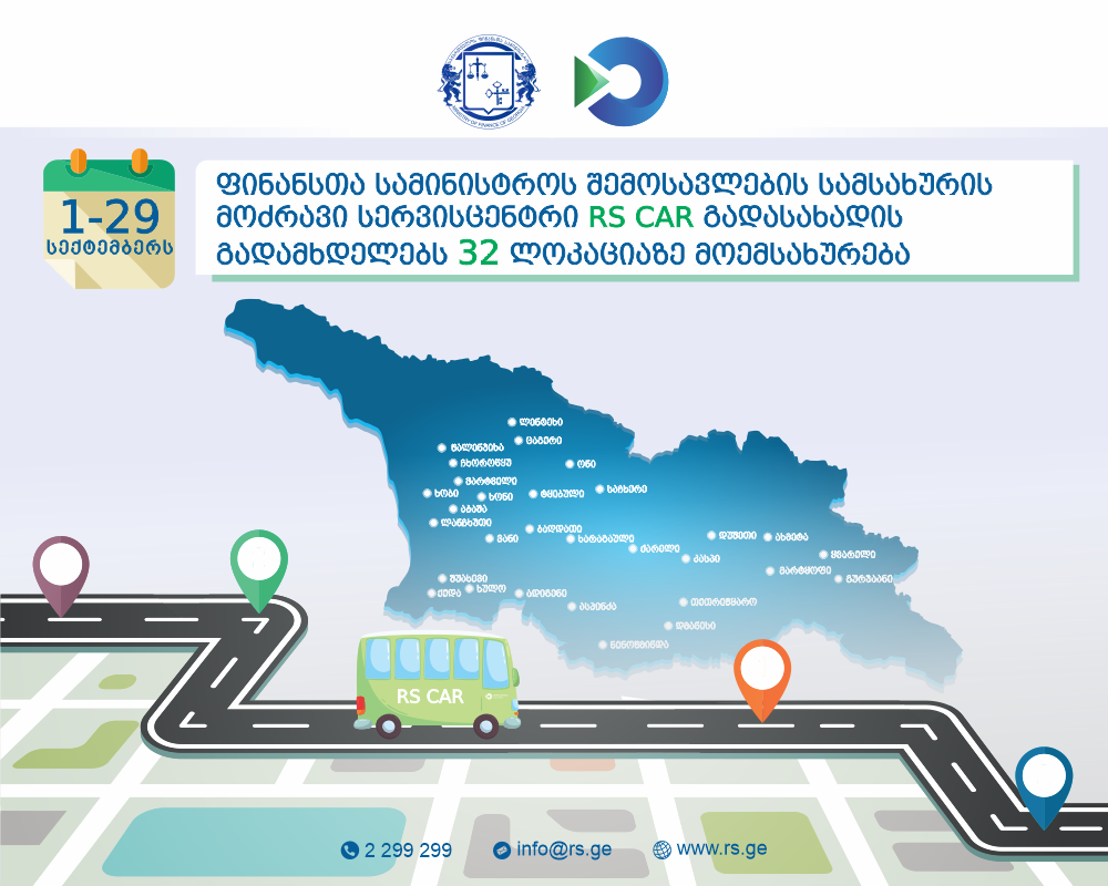 1-29 სექტემბერს, RS CAR გადასახადის გადამხდელებს 32 ლოკაციაზე მოემსახურება