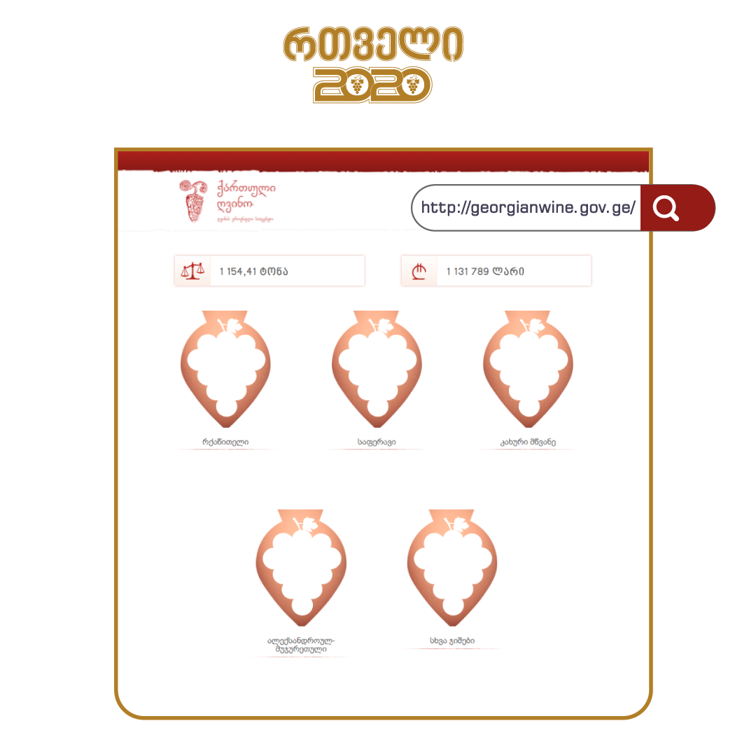 31 აგვისტოს მონაცემებით, „რთველი 2020"-ის ფარგლებში, გადამუშავებულია 1200 ტონამდე, სხვადასხვა ჯიშის, ძირითადად საადრეო ყურძენი