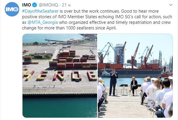 საქართველოში „მეზღვაურის დღის“ ამსახველი ინფორმაცია საერთაშორისო საზღვაო ორგანიზაციამ სოციალურ ქსელში საკუთარ გვერდებზე გამოაქვეყნა