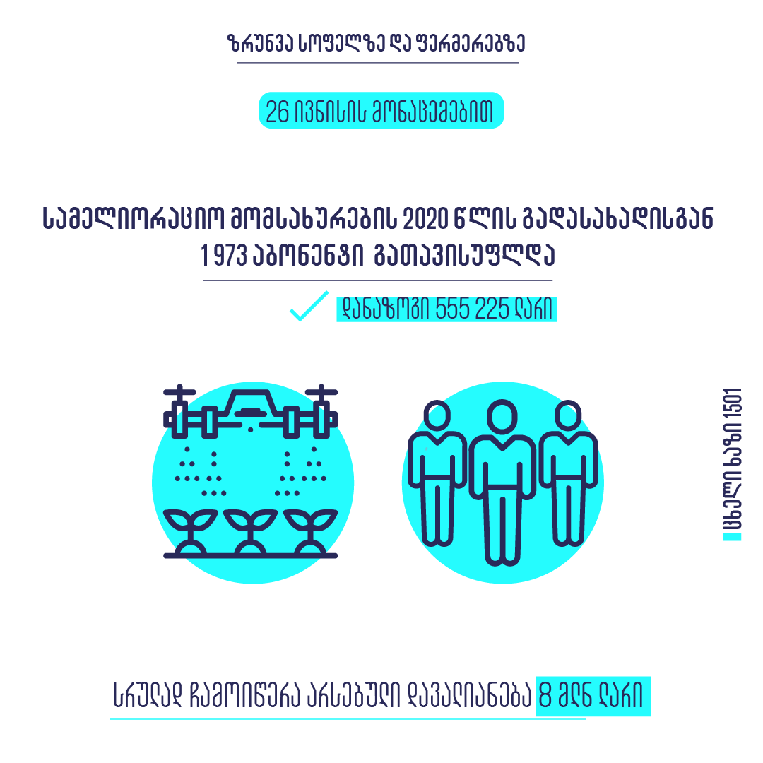 სამელიორაციო მომსახურების 2020 წლის გადასახადისგან უკვე 1 973 აბონენტი გათავისუფლდა, დანაზოგმა 555 225 ლარი შეადგინა