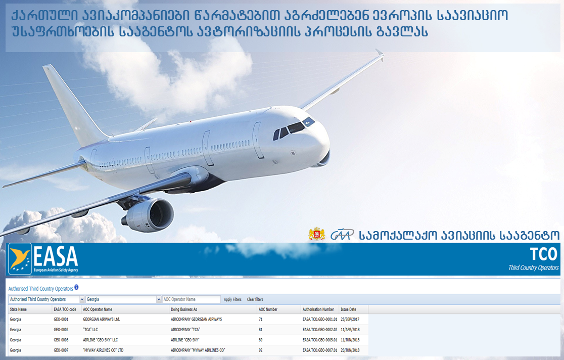 ევროპის საავიაციო უსაფრთხოების სააგენტოს (EASA) ავტორიზაცია მეოთხე ქართულმა ავიაკომპანიამ მოიპოვა