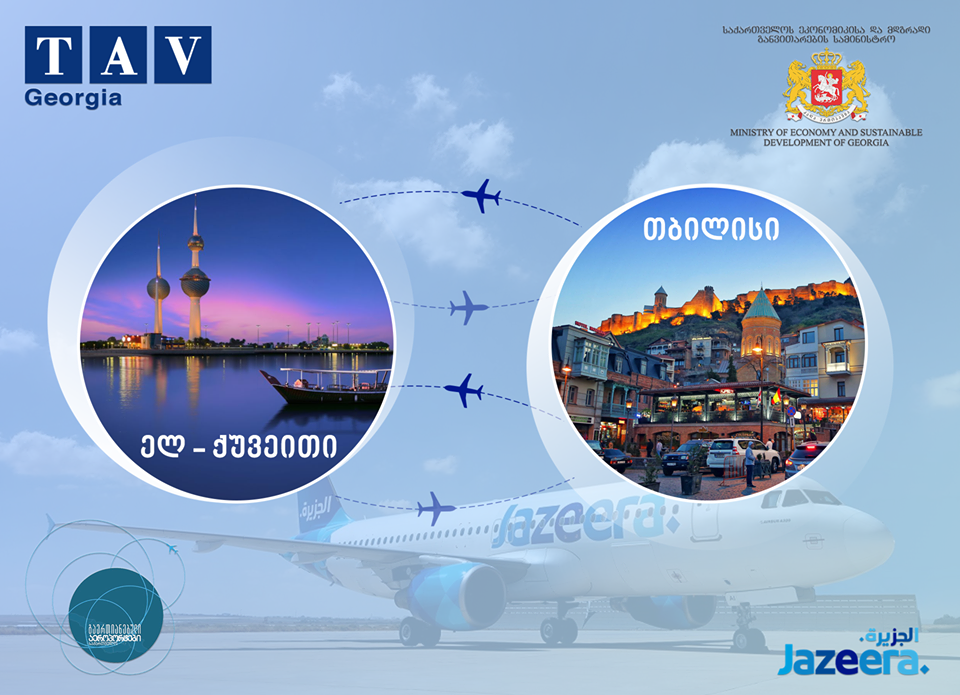 ქუვეითის ავიაკომპანია „Jazeera Airways“-მა თბილისის მიმართულებით პირველი რეისი შეასრულა