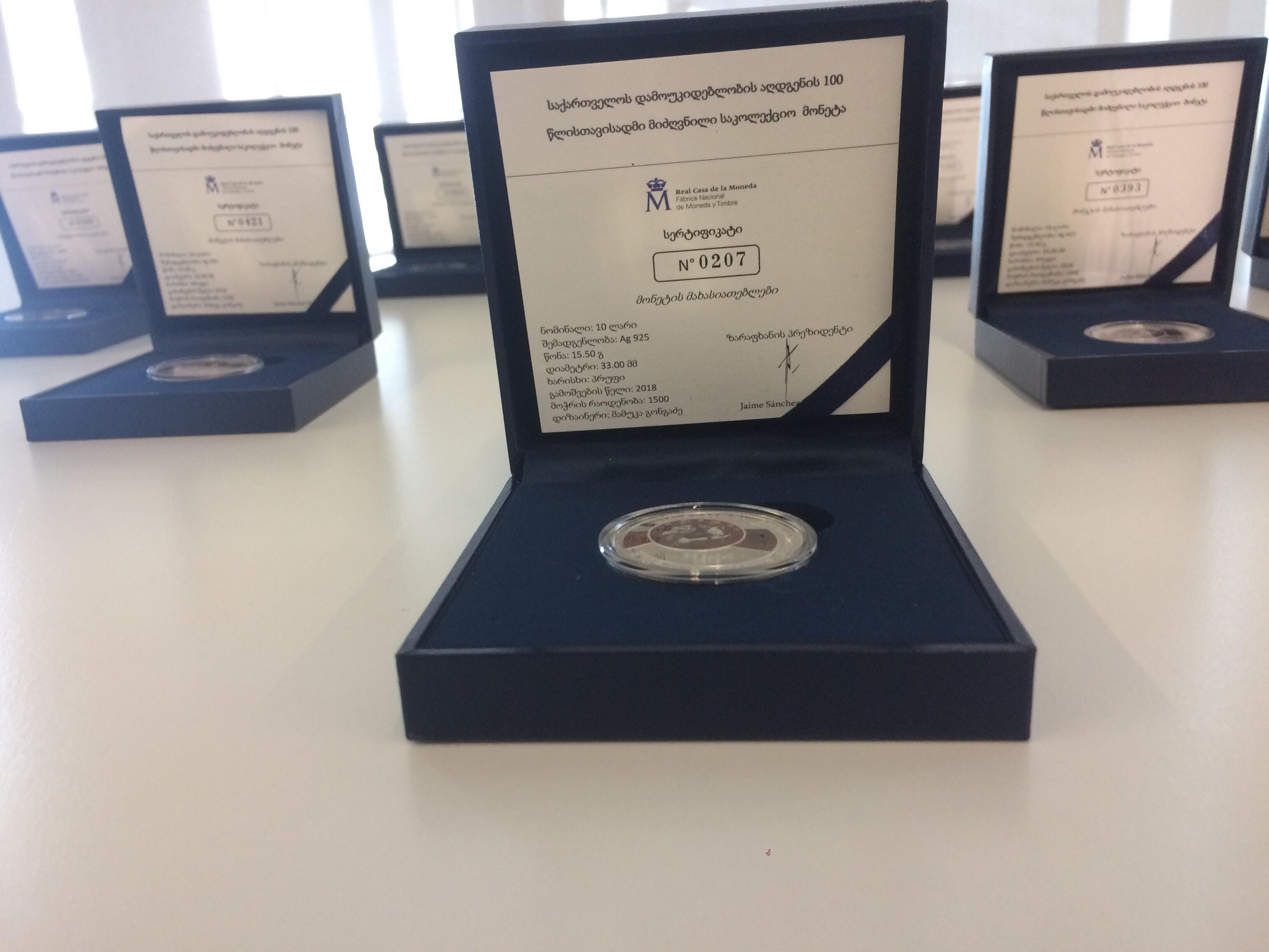 სებ-მა საქართველოს პირველი დემოკრატიული რესპუბლიკის დაარსებიდან 100 წლის იუბილესთან დაკავშირებით, საკოლექციო მონეტა გამოუშვა