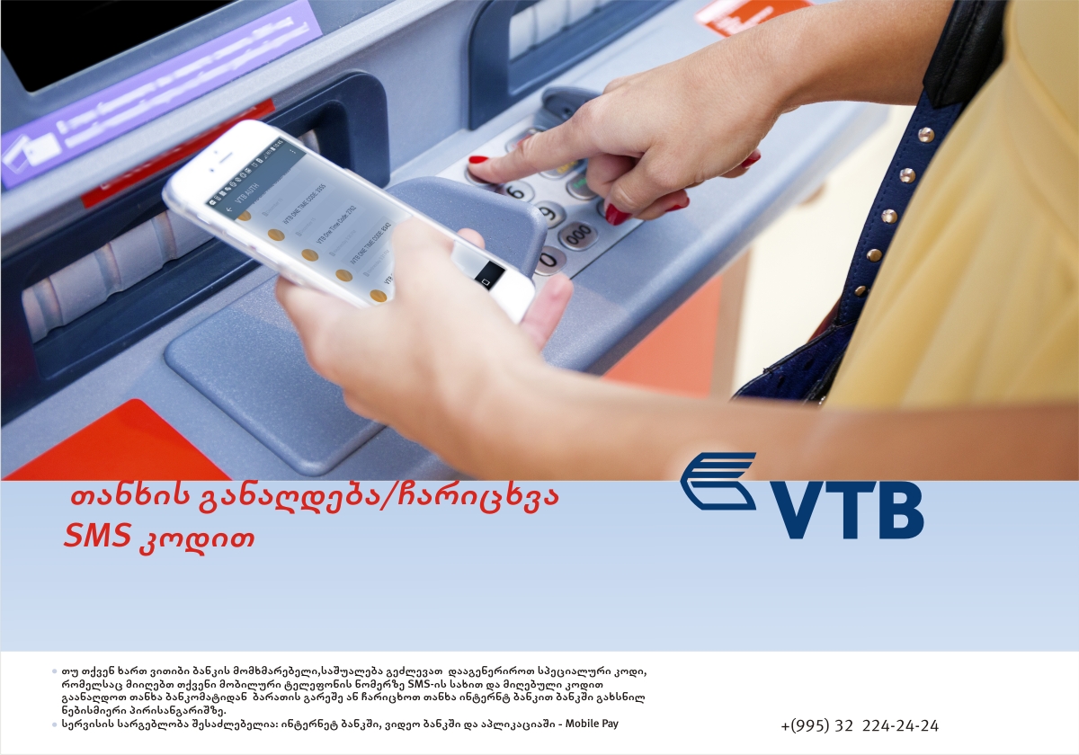 „ვითიბი ბანკმა“ მომხმარებელს თანხის SMS კოდით განაღდება - ჩარიცხვის შესაძლებლობა შესთავაზა