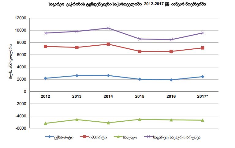 იანვარ-ნოემბერში, საქონლით საგარეო სავაჭრო ბრუნვა 12.9%-ით გაიზარდა