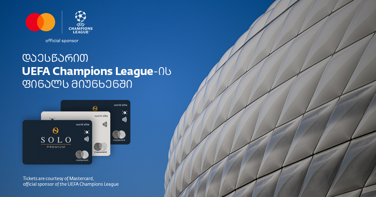 თუ ხართ SOLO Mastercard World Elite ბარათის მფლობელი, შესაძლებლობა გაქვთ, გაემგზავროთ ჩემპიონთა ლიგის ფინალურ მატჩზე