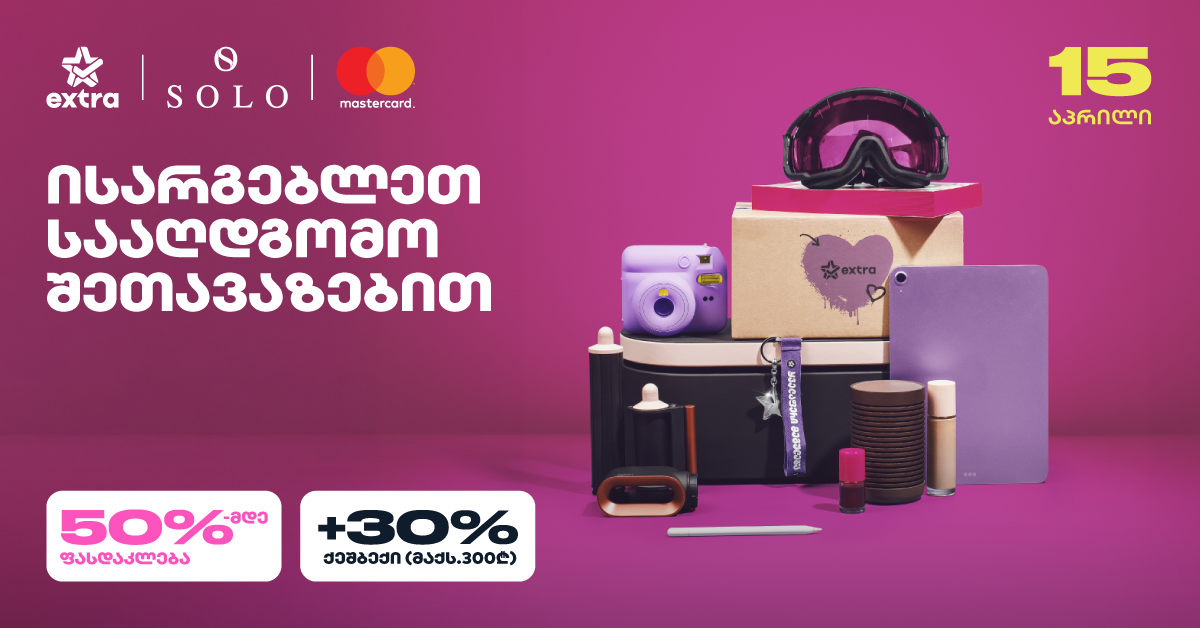 ისარგებლეთ 30%-იანი ქეშბექით Extra-ზე SOLO Mastercard World Elite ბარათით გადახდისას