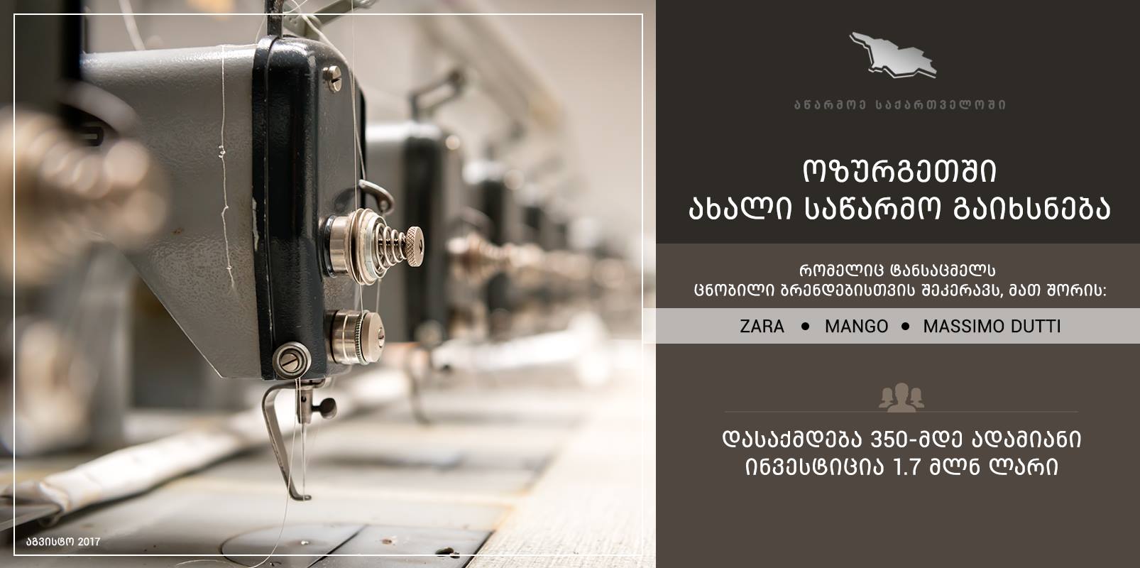 ახალი საწარმო, რომელიც ოზურგეთში გაიხსნება, ტანსაცმელს ZARA-ს და სხვა ცნობილ ბრენდებს შეუკერავს