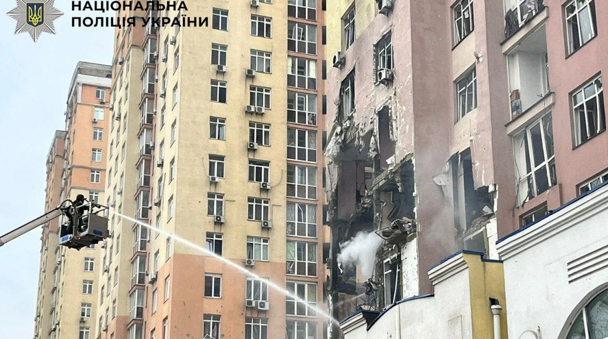 რუსული თავდასხმა კიევზე: დრონის ნამსხვრევები საცხოვრებელ კორპუსთან ახლოს ჩამოვარდა, 5 ადამიანი დაშავდა