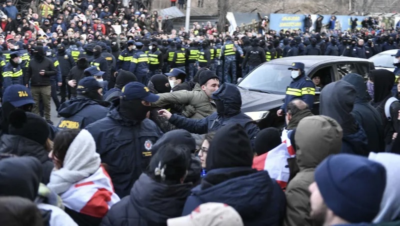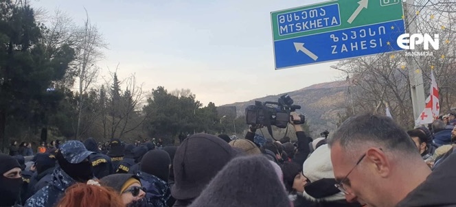 თბილისის გასასვლელთან,აქციის მონაწილეებსა და პოლიციას შორის დაპირისპირება იყო