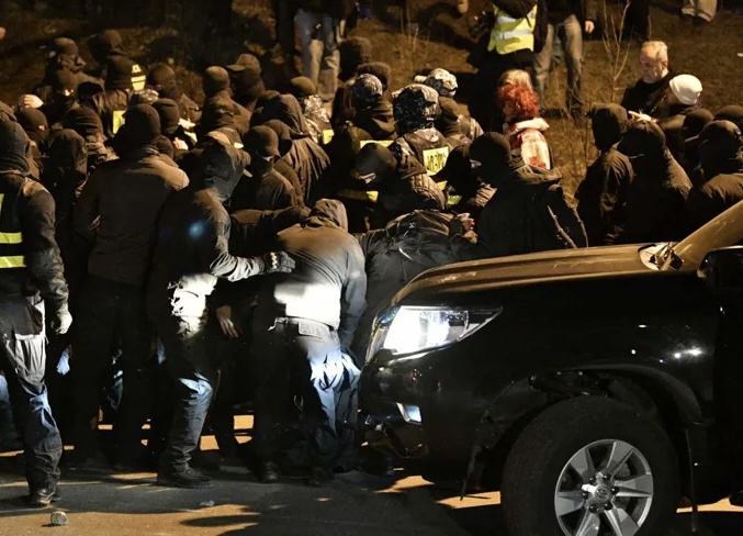 აქციის მონაწილეებს საპოლიციო ძალების წარმომადგენლებმა გზის გადაკეტვის საშუალება არ მისცეს