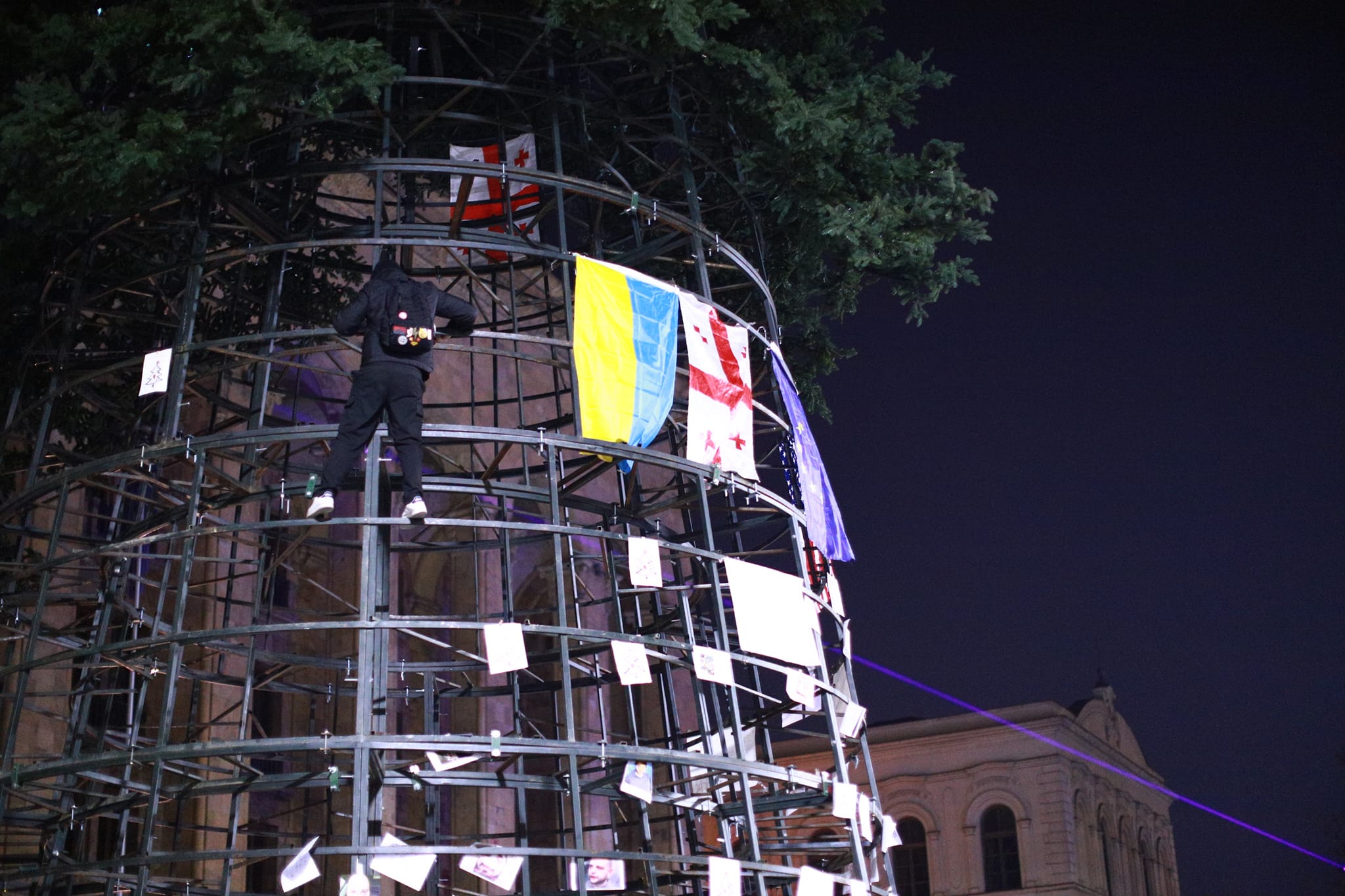 თბილისის მერია - მოვუწოდებთ აქციის მონაწილეებს, არავითარ შემთხვევაში არ ავიდნენ ნაძვის ხის კონსტრუქციაზე, მათივე უსაფრთხოებიდან გამომდინარე