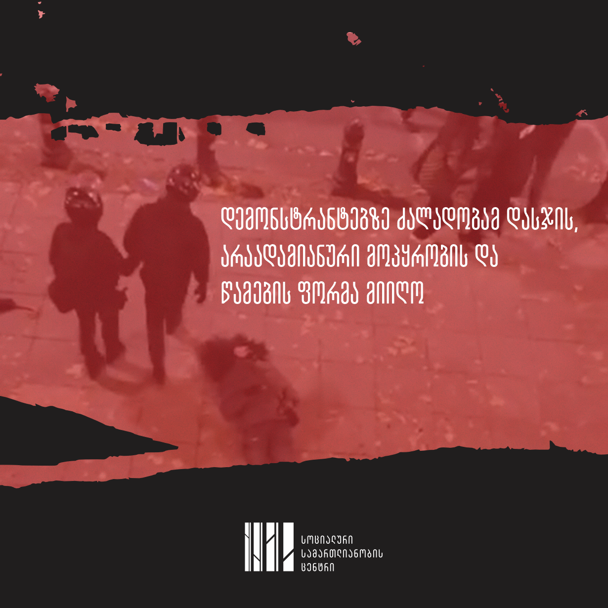 „სოციალური სამართლიანობის ცენტრი“ - დემონსტრანტებზე ძალადობამ დასჯის, არაადამიანური მოპყრობის და წამების ფორმა მიიღო