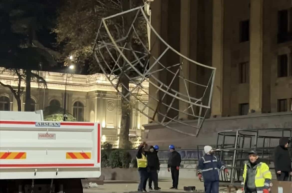 პარლამენტის შენობის წინ ნაძვის ხეს აწყობენ