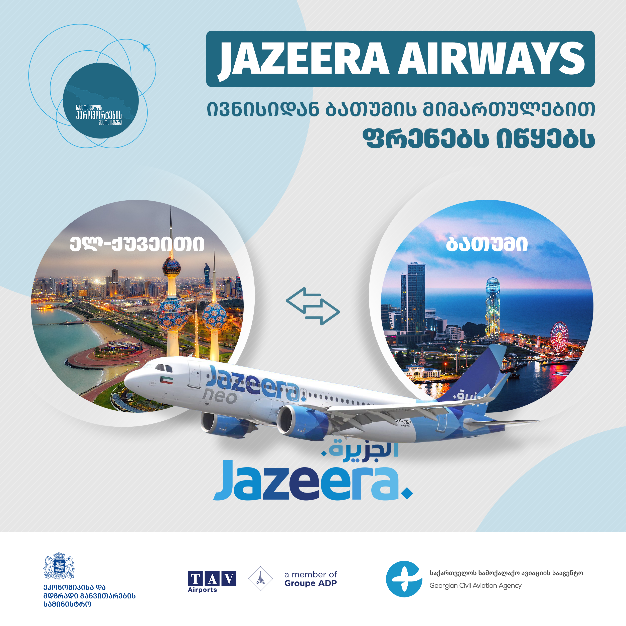 ივნისიდან Jazeera Airways ელ-ქუვეითიდან ბათუმის მიმართულებით ოპერირებას იწყებს