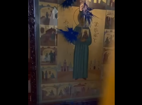 ხატს, რომელზეც სტალინია გამოსახული, სავარაუდოდ, საღებავი შეასხეს [ვიდეო]