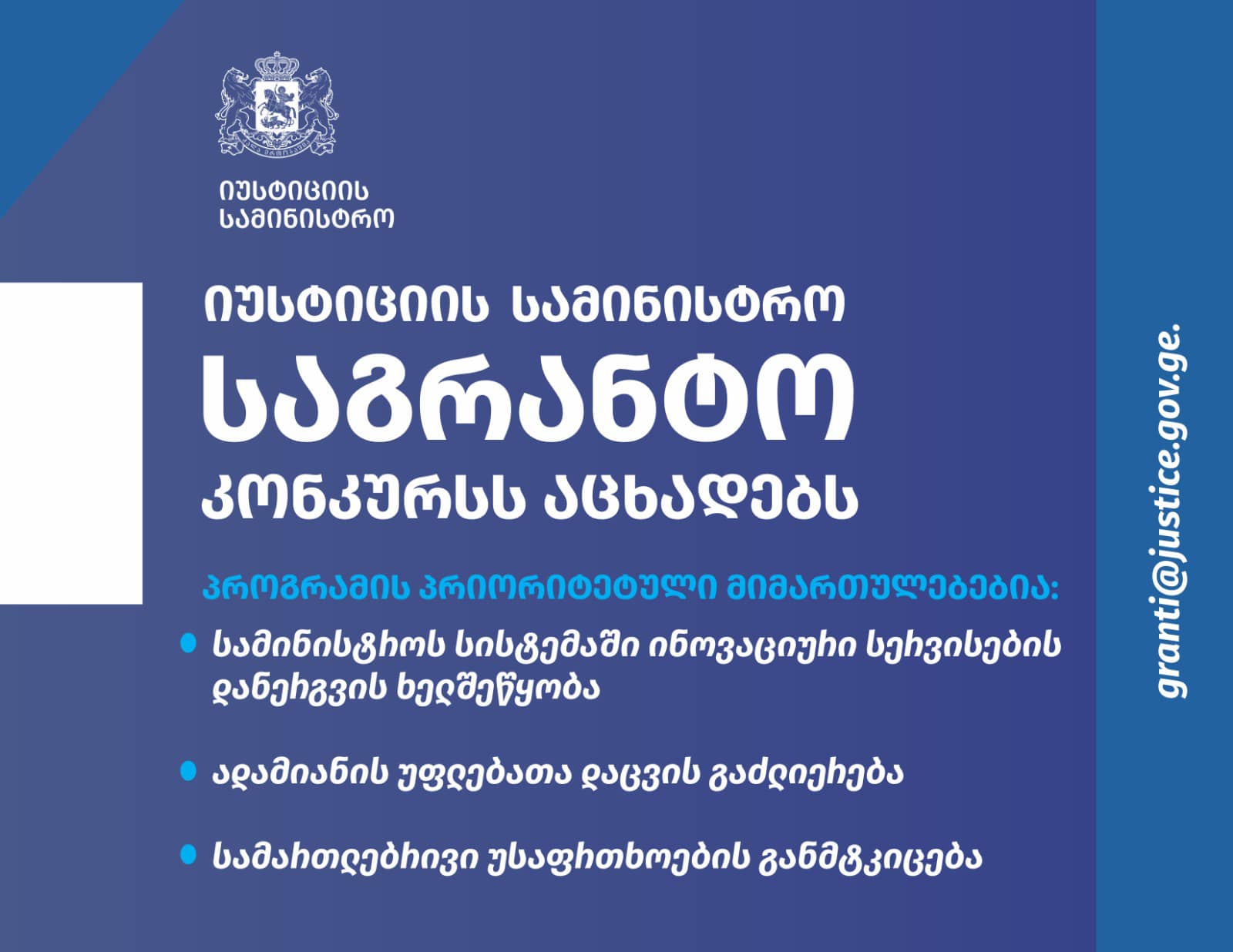 ბრეგაძე - იუსტიციის სამინისტროს საქმიანობაში სამოქალაქო სექტორის საგრანტო კონკურსი გრძელდება