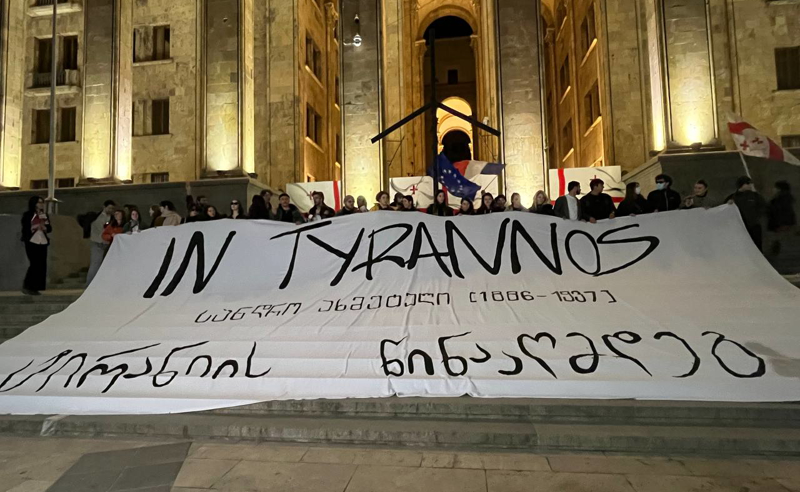 თეატრისა და კინოს სახელმწიფო უნივერსიტეტთან აქცია მიმდინარეობს