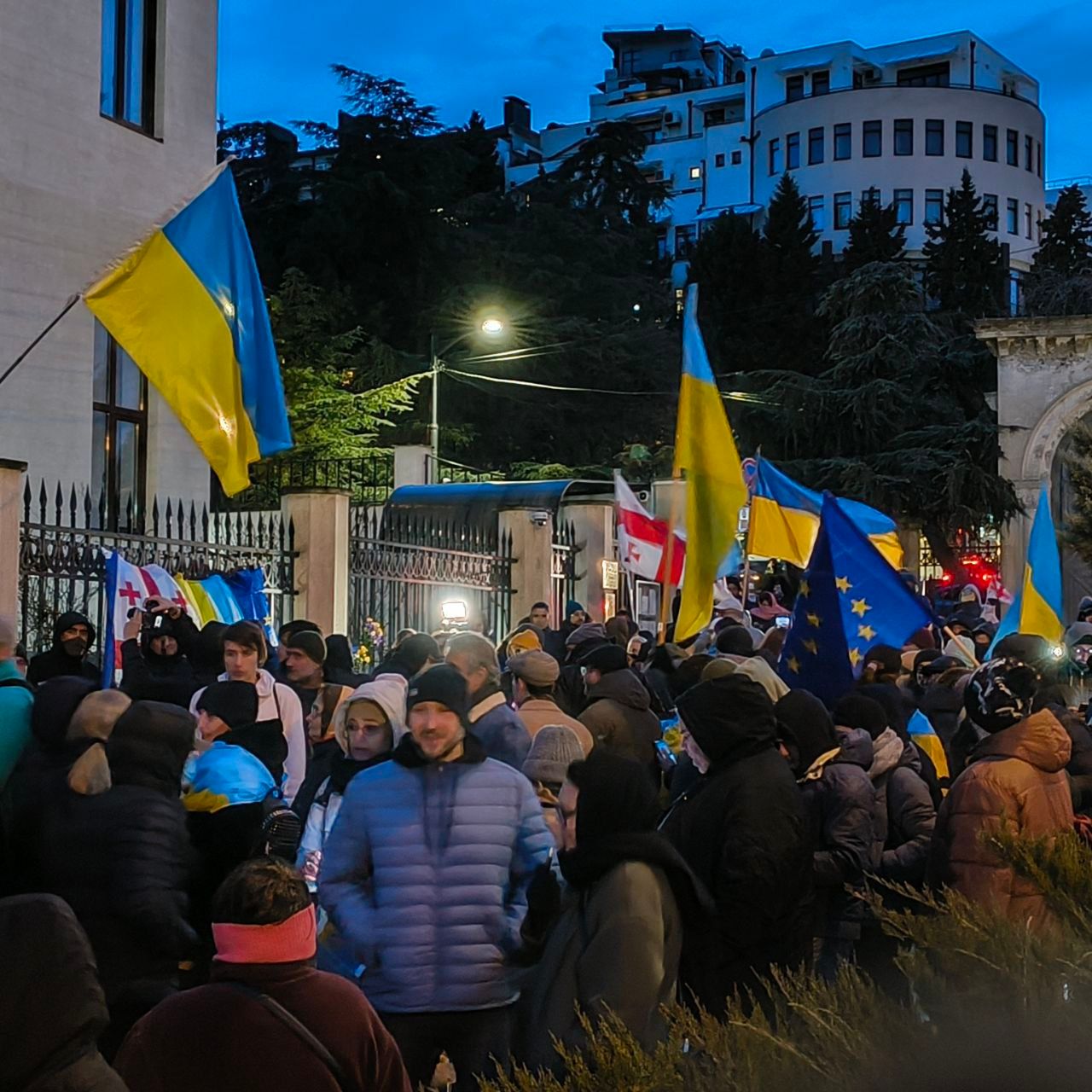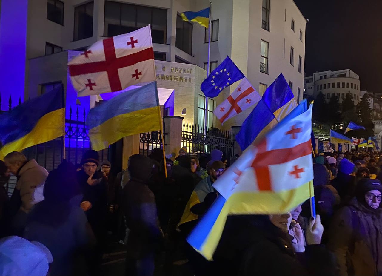უკრაინის საელჩოსთან სოლიდარობის აქცია მიმდინარეობს