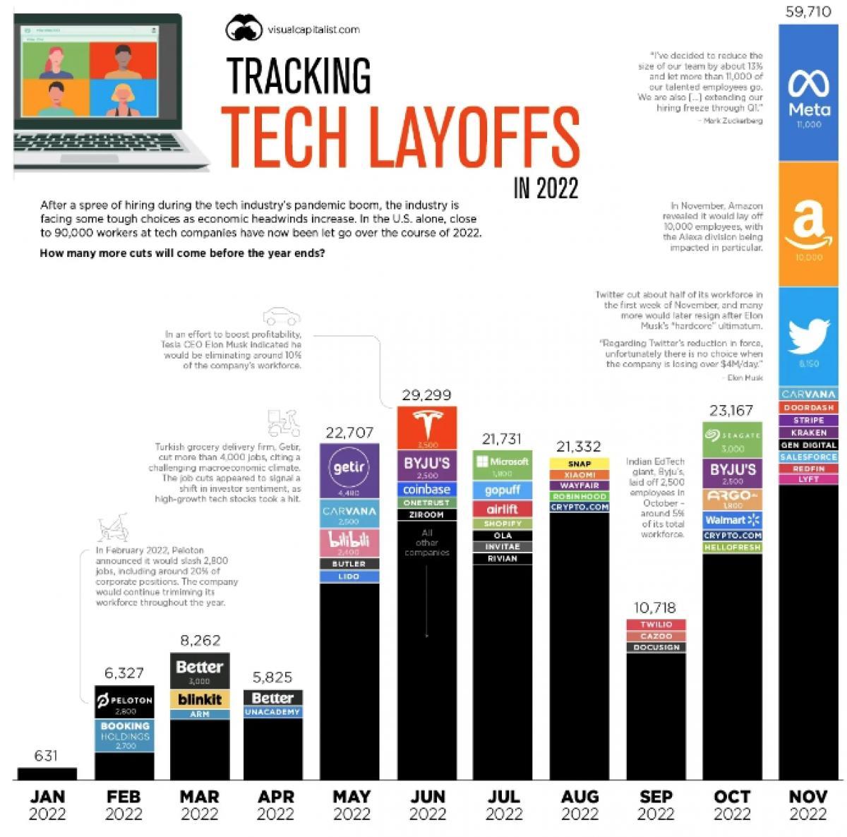 მასობრივი გათავისუფლება IT ინდუსტრიაში შემცირებამ იაფად გამორჩეულ ლეგენდარულ ინდოელ კოდერებსაც კი შეეხო: ინდოეთში, ნოემბრის ბოლოს, თითქმის 18000 IT სპეციალისტი გაათავისუფლეს. რა არის ამხელა შემცირების მიზეზი? 2020-2021 წლებში, ეკონომიკის სწრაფი დიგიტალიზაციის ფონზე, IT კომპანიებმა მკვეთრად გაზარდეს დასაქმებულთა რაოდენობა დაბალი ტარიფებით. ბოლო პუნქტი განსაკუთრებით მნიშვნელოვანია: ბევრი კომპანია წამგებიანია და მათ სჭირდებათ იაფ ფულზე წვდომა. იაფი სესხები ასევე მნიშვნელოვანი იყო მსხვილი მომგებიანი კომპანიებისთვის, როგორიცაა მაიკროსოფტი და კერძო ფონდები: იაფი სესხებით ისინი აფინანსებდნენ მრავალი IT კომპანიის შეძენას, მიუხედავად მათი წამგებიანისა. ინფლაციამ ხელფასები აიწია. თავდაპირველად, ტექნოლოგიური კომპანიები ცდილობდნენ ინფლაციის წინააღმდეგ ბრძოლას თანამშრომლების დისტანციურ სამუშაოზე გადაყვანით: როდესაც ადამიანი ტოვებს ძვირადღირებულ სან-ფრანცისკოს გაცილებით იაფ შტატში სადღაც სამხრეთში, ყოველ შემთხვევაში, მას არ შეუძლია გაზარდოს ხელფასი. მაგრამ როდესაც მთლიანმა ეკონომიკამ შენელება დაიწყო და IT კომპანიებმა კორპორატიულ სექტორში მოთხოვნის შემცირების წინაშე აღმოჩნდნენ, მათ გადაწყვიტეს შემცირებულიყვნენ თავიანთი რიგები, რათა შეენარჩუნებინათ მომგებიანობის ჩვეული დონე. გასაფართოებლად და შესაძენად ფულის სესხება გართულდა. ასე, მაგალითად, Citrix სერვისის შესყიდვის კამპანია მყიდველებისთვის წარმატებით დასრულდა. მაგრამ კრედიტორებისთვის ყველაფერი უარესი აღმოჩნდა: Bank of America-მ, Credit Suisse-მა და Goldman Sachs-მა იანვარში Citrix-ის მყიდველებს, კერძო ფონდების კონსორციუმს, 4 მილიარდი დოლარის სესხი მისცეს და ინვესტორებისთვის იმავე ფასად გაყიდვას ემზადებოდნენ. უარყოფითი გადაფასება ასევე ეხება სტარტაპებს, რომლებიც ჯერ არავის უყიდია. 2022 წლის ზაფხულში, შვედურმა ფინტექსტურმა სტარტაპმა Klarna-მ მიიღო 800 მილიონი დოლარი ინვესტიციების მოზიდვის შემდეგი რაუნდის დროს და ინვესტორებმა, რომლებიც ამ კომპანიაში ინვესტირებას განახორციელებენ, მისი ღირებულება 6,7 მილიარდ დოლარად შეაფასეს, რაც 85%-ით იაფია იმ თანხაზე, რომლითაც კომპანია დაბრუნდა. 2021 წლის ზაფხულში - $45,6 მილიარდი. რა ღირს კლარნა ახლა უცნობია. წლის დასაწყისში კლარნას 7000 თანამშრომელი ჰყავდა, სექტემბერში კი უკვე 6000. IT პროფესიონალებისთვის მთელ მსოფლიოში, მასობრივი გათავისუფლება აშშ-ში და სხვაგან ცუდი ამბავია. თანამდებობიდან გათავისუფლება შექმნის შრომის ჭარბი რაოდენობას ბაზარზე და ამ სფეროში ხელფასების მკვეთრი ზრდ