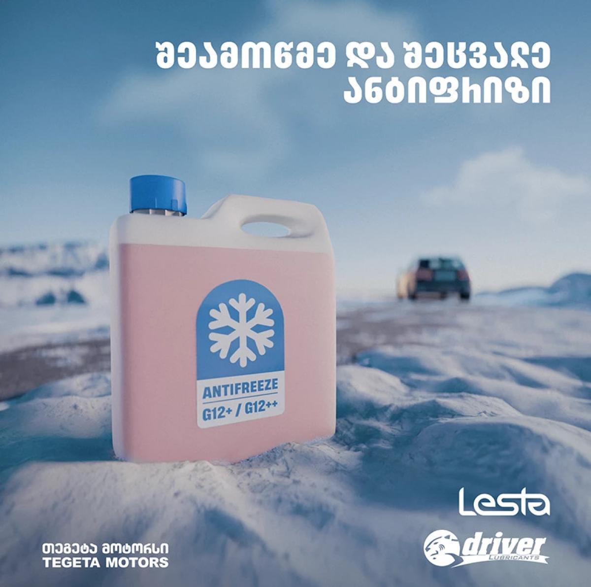 ზამთარში ავტომობილი განსაკუთრებულ ყურადღებას, შემოწმებასა და ზამთრის ამინდის შესაბამისი პროდუქტებით აღჭურვას მოითხოვს. „თეგეტა მოტორსის“ კრეატიული პრინტ სერია „იმგზავრე ჩავარდნების გარეშე“ სწორედ ამ საკითხს ეხმიანება და ტრადიციულად მძღოლებს სიფრთხილისკენ მოუწოდებს. კრეატიულ ბანერებზე ყველაზე მნიშვნელოვანი სეზონური პროდუქტებია გამოსახული და მძღოლებს უსაფრთხო გადაადგილებისთვის აუცილებელ პირობებს შეახსენებს. ერთ-ერთი ასეთი ფაქტორი, რომელიც ზამთრის დღეებში ავტომობილის შეუფერხებლად გადაადგილებას უზრუნველყოფს, ანტიფრიზია.