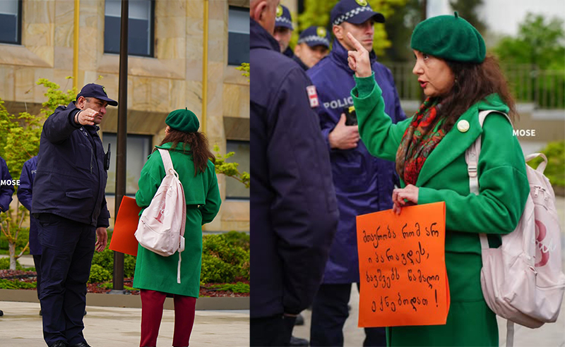 ტერიტორია დაატოვებინეს აქტივისტს, რომელიც კობახიძის ბრიფინგის პარალელურად, კანცელარიასთან, საპროტესტო წარწერით მივიდა